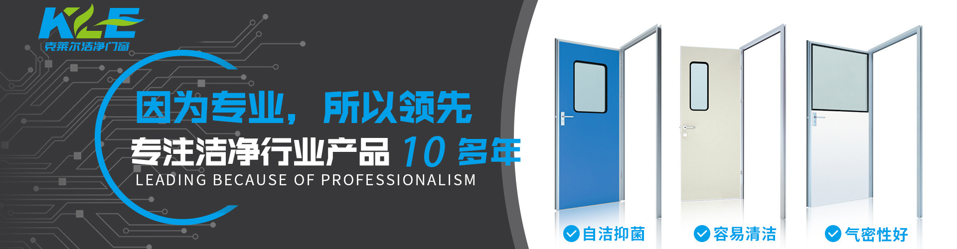 廣東克萊爾潔凈科技有限公司是一家集生產、研發、銷售于一體的專業潔凈門窗生產企業。 公司擁有現代化標準廠房10000多平方米,配備全自動靜電噴涂流水線及 3000平以上萬級無塵生產車間,專供潔凈門及中空窗的生產裝配等。公司不斷引進一流生產設備(如瑞士百超激光切割機、日本AMADA數控折彎機、超聲玻璃清洗機等),采用國際最先進的技術及裝備確保產品品質,是華南區域最具規模的專業潔凈鋼制門及中空潔凈窗生產廠家。公司在同行業率先通過ISO9001質量體系認證,并先后獲得多項專利認證及榮譽證書。 KLE purification equipment Co., Ltd. is a set of production, research and development, sales in one of the professional clean doors and windows production enterprises.The company has a modern standard workshop of more than 10000 square meters, equipped with automatic electrostatic spraying line and more than 30 million level dust-free production workshop, specially for the production and assembly of clean doors and hollow windows. The company constantly introduces first-class production equipment (such as Swiss Baichao laser cutting machine, Japanese AMADA CNC bending machine...